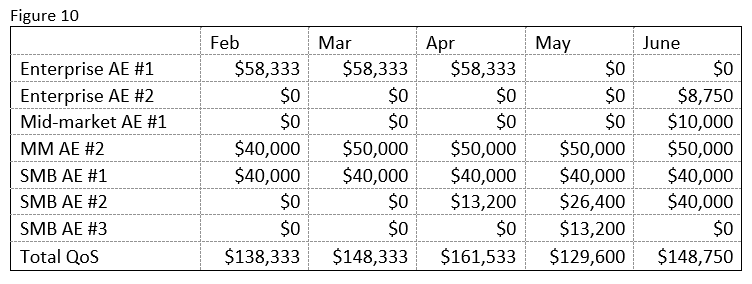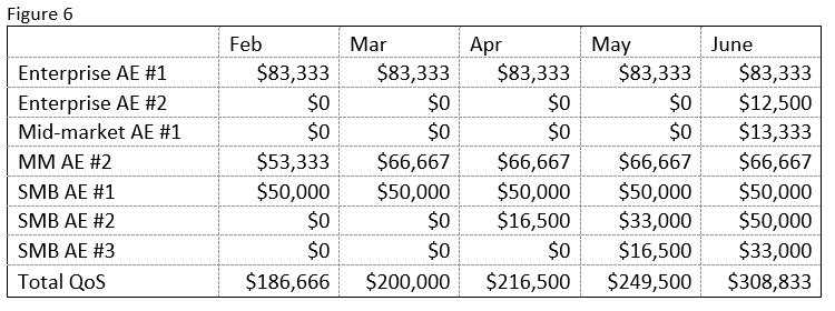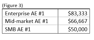 BB: Yes, a good next step is to determine what quotas the different roles will carry. For instance, most SMB AE’s tend to carry lower quotas than their Enterprise peers. You would also factor in any AE’s in different geos or different verticals here.