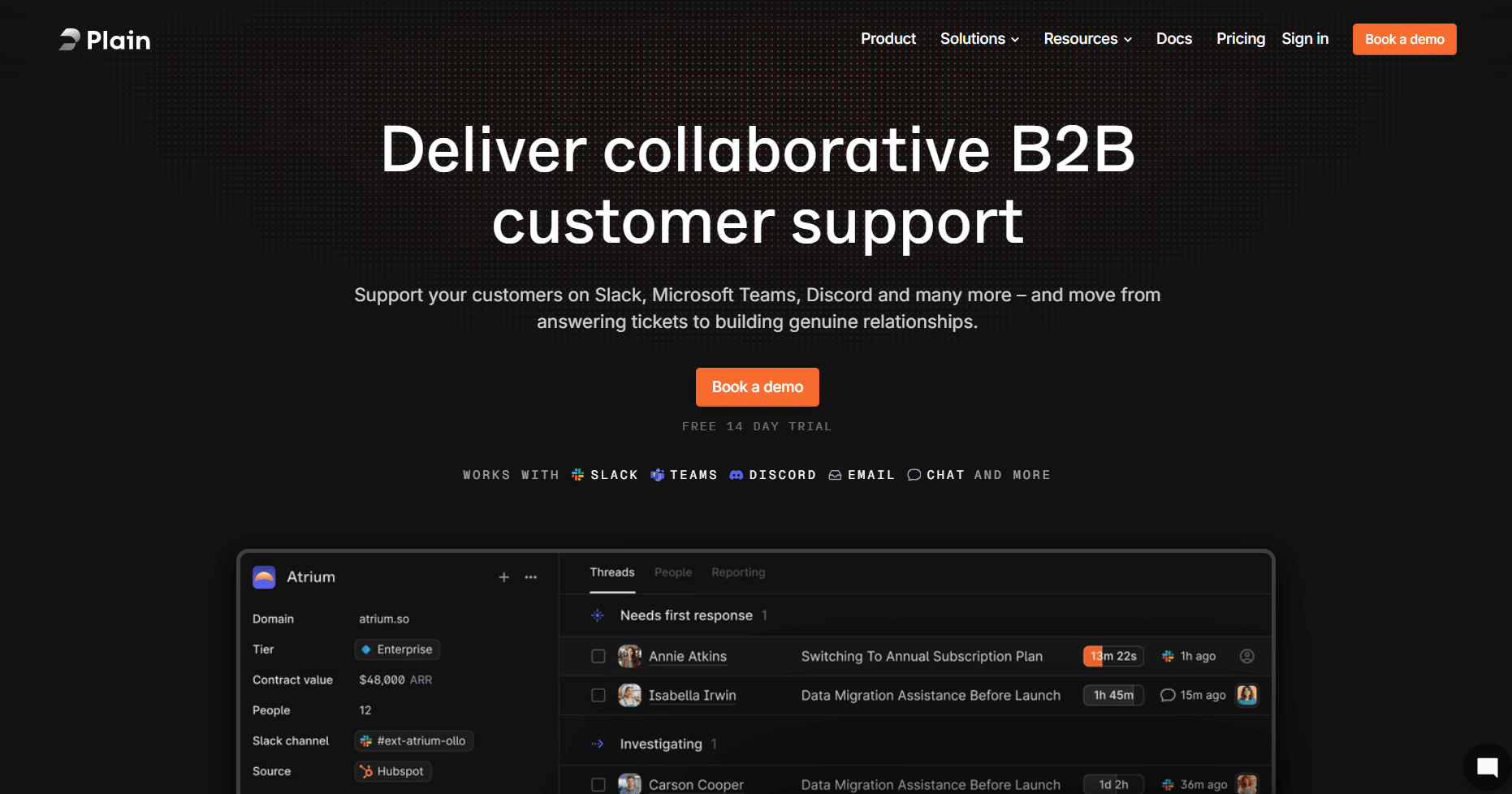 Founded by Simon Rohrbach and Mathias Vagni, we feel Plain is pioneering a fundamental shift in how B2B customer support is delivered. The team has built a unified platform that not only streamlines customer support processes but enables the right teams (e.g., engineering, product, sales) to address the right issues, in our view. Plain has empowered customer support to be a conduit between customer and vendor rather than a bottlenecked ticketing system, helping B2B business build a collaborative, relationship-driven experience.